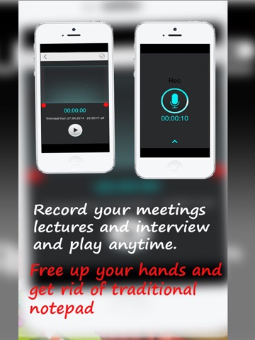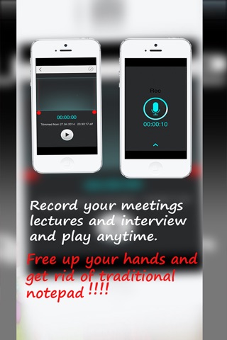 Records dictated notes and memos as well as record meeting, lecture, interview, and day to day sounds. Time to free up your hands and get rid of the traditional notepad! Stop typing and taking notes by hand and start audio recording everything you need from a todo list to a critical memo.