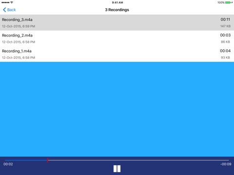 Share/export recorded audio through various sharing options such as Drive, Message, Mail, Dropbox, WhatsApp, Messenger etc.