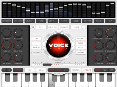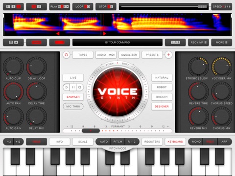 Vocoder/sampler très orienté voix, peut fonctionner avec le mic de loreillette. Pas mal doptions de traitement de la voix, des banques de samples intégrées et un rack deffets: delay, reverb, chorus, autotune. Produit pas le meilleur des sons, mais linterface est propre et les possibilités nombreuses.