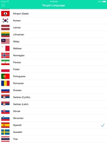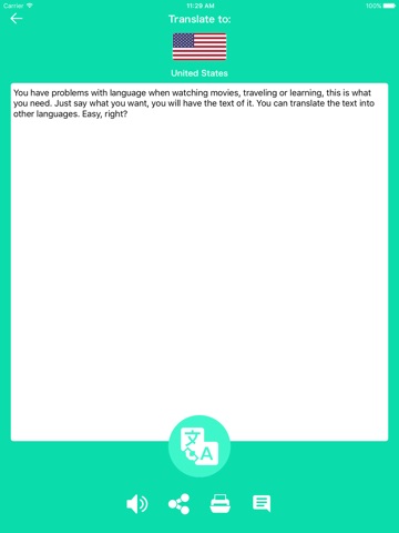 All you have to choose target language and click “Voice” button. Or if you just want to translate the text, through the next screen, type anything and click "Translate" button.