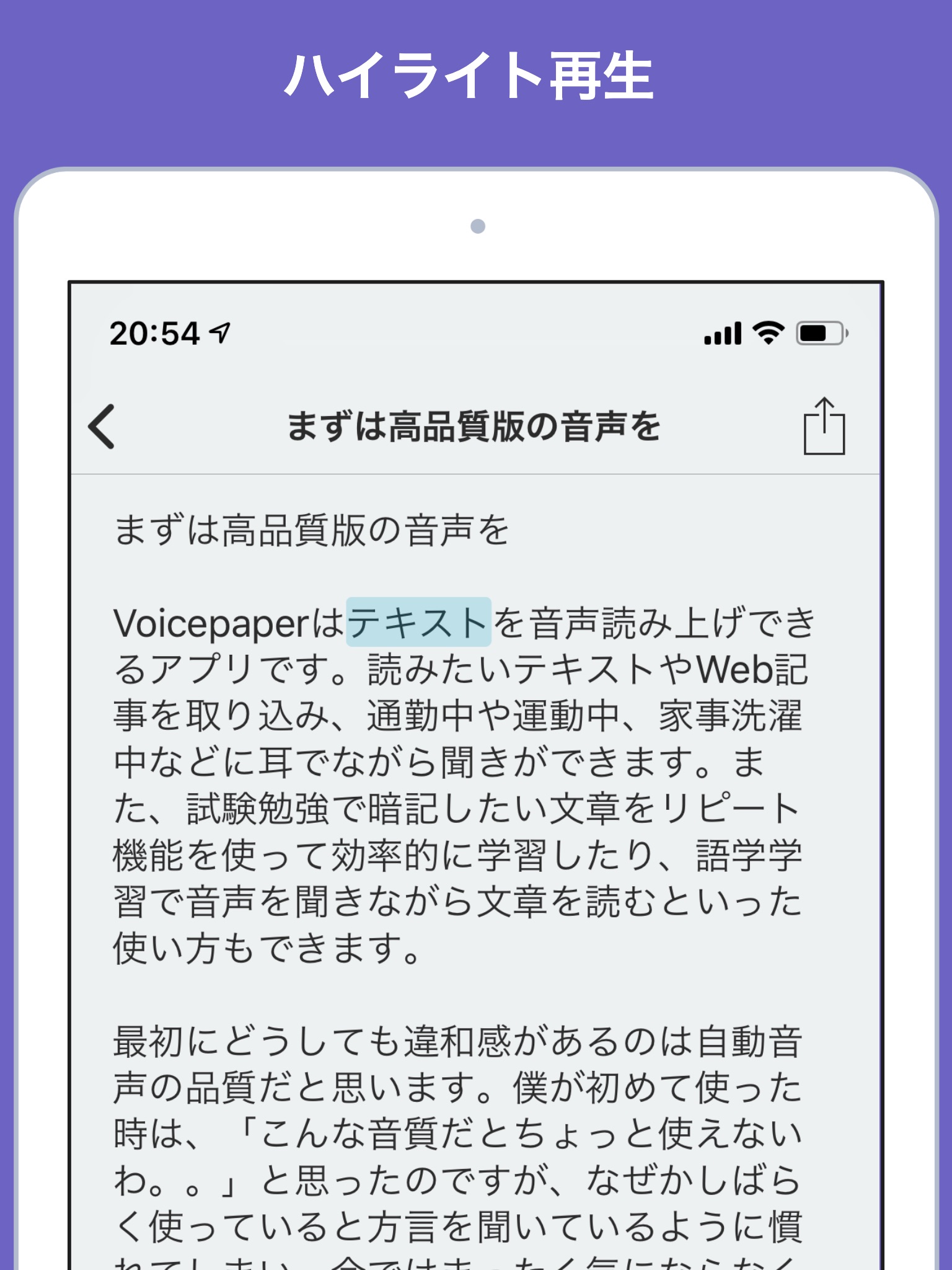 Voicepaper is a simple text-to-speech app that lets you listen to books, novels, and web articles on the go. Its perfect for exam study and language learning. Its also free to use with no ads.