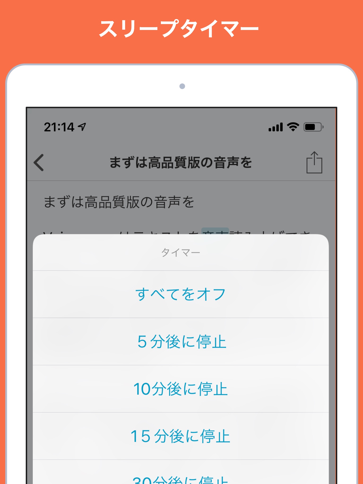 Listen to novels and business books during your commute. Import PDFs and web articles to gather information by ear. You can switch the playback speed up to 3x with one touch—and even speed it up further.