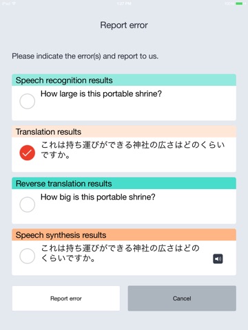 This application was developed for research purposes; targeting individuals to test it out when traveling, and uses servers that are also setup for research purposes. The data recorded on the server will be utilized to make improvements in speech translation technologies.
