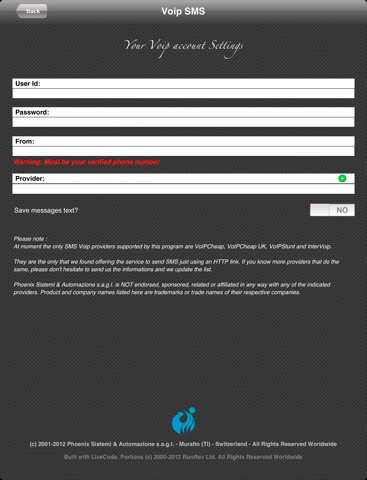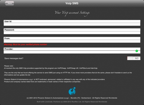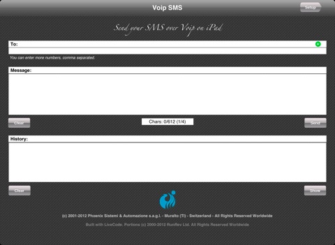 VoipSMS is a simple program created to allow sending SMS, through some VoIP providers, from iPad.