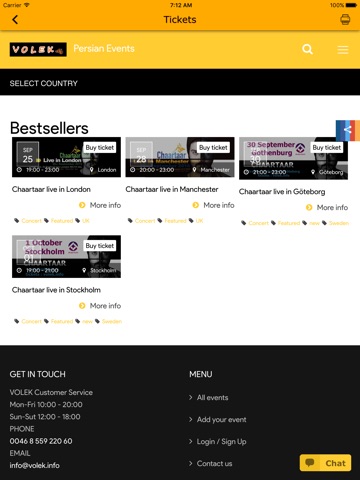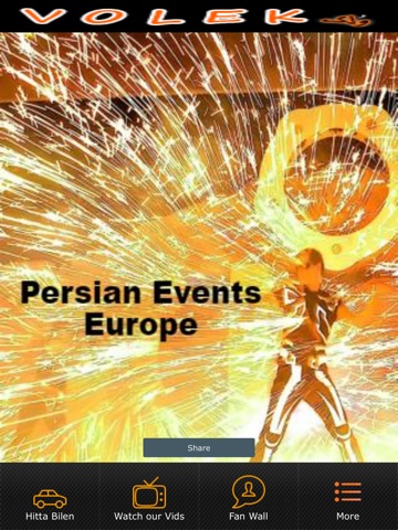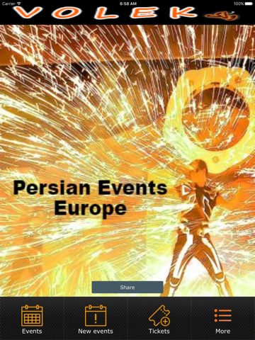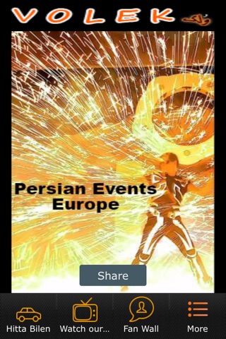 Volek app lists persian entertainment events in Europe.