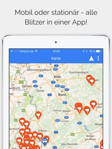- enthält alle bekannten mobilen und stationären Blitzer der Region
