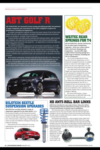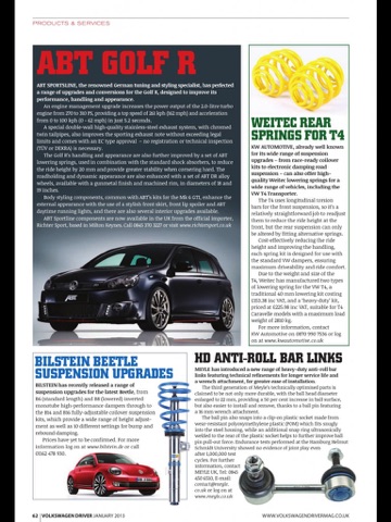 New technology, project cars and technical / workshop content also feature in our regular technical forum pages and 3 or 4 pages of every issue are devoted to details of the latest new products and services for the Volkswagen driver.