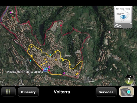 Integrating my typical points-of-interest structure with a number of graphics I will enable you to leaf through the town’s history by means of the development of the urban landscape and its close relationship to the natural features of the hill on which it stands. The guide works offline, so it doesn’t need internet connection.