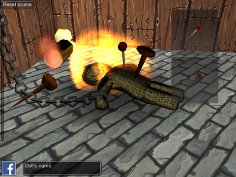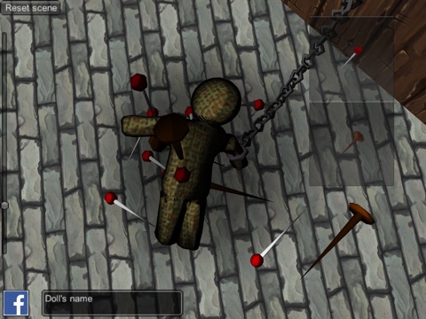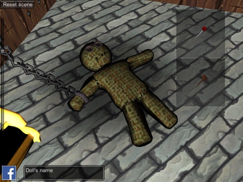 Play with a voodoo doll in fully interactive 3D world! Stick the doll with pins, nail it down to the table. You can burn the doll with a candle flame. Drag the voodoo doll around and watch as it moves!