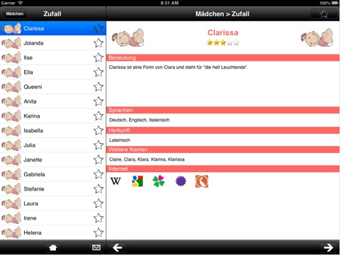 Diese App wurde direkt für den deutschsprachigen Raum produziert und enthält zu jedem Namen auch dessen Bedeutung.