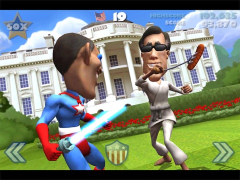 Frustrated about taxation without representation or one sided policies? Beat your opponent on the debate stage (in this case comically, and with an all American hot dog while wearing cool shades). As others are writing, it would be fun to get an update with 2016 candidates. Do the weapons have different combo patterns like Infinity Blade? Cant quite tell...
