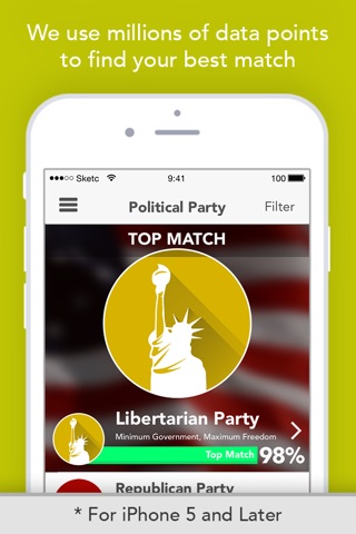 It’s like online dating, for politics! We analyze mountains of data, including public stances, voting records, speeches, and more, to make sure your matches are accurate. Because everyone deserves to have confidence in their vote.