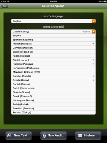 Translation services are available for requests to and from the following languages: English, French, Spanish, Italian, German, Portuguese, Catalan, Greek, Arabic, Russian, Czech, Turkish, Dutch, Danish, Finnish, Polish, Norwegian, Swedish, Japanese, and Mandarin Chinese. More to come soon.