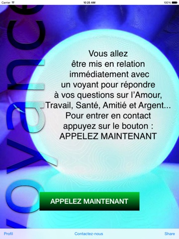 VOYANCE est une application gratuite qui vous permet dentrer en contact téléphonique via votre iPhone ou votre iPad, avec un(e) voyant(e) directement sans avoir à retenir un numéro de téléphone.