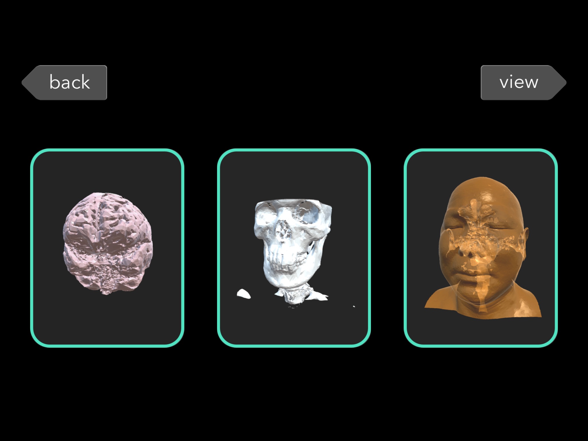 頭部は脳、頭蓋骨、皮膚のそれぞれの表示をON/OFFできるようになっています。