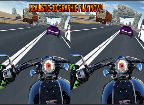 VR Crazy Bike Racing Feel the thrill of authentic racing action in Ultra Moto VR bike racing today! The most vibrant, super-charged Crazy VR Bike Racing game youve ever seen. Extreme quad bikes on a dusty trail racing through mountains, hills, desert and the highway. Try to get as far as possible. Control your bikes with an incredible fast turbo speed during city traffic rush time! In this high velocity racing game you need to dodge cars and trucks to drive further and further.