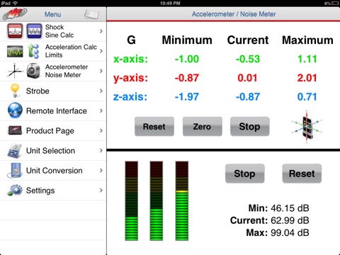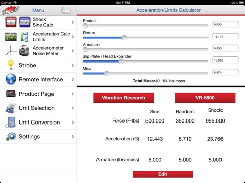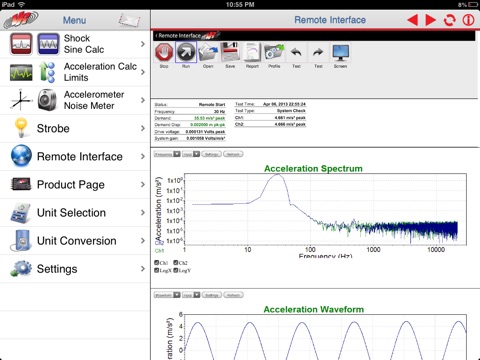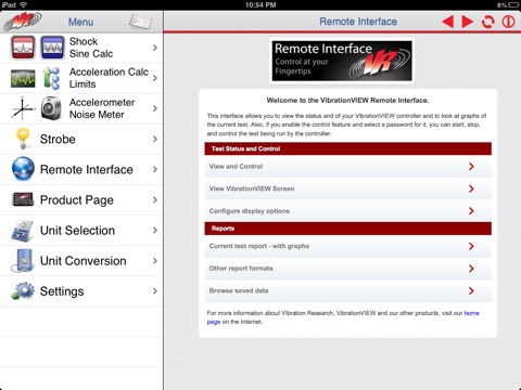 VR Mobile connects to any Vibration Research hardware device for live vibration test monitoring via an iPhone or iPad. It also contains engineering calculators, a light strobe, a noise SPL meter, and an accelerometer--all from your mobile device!