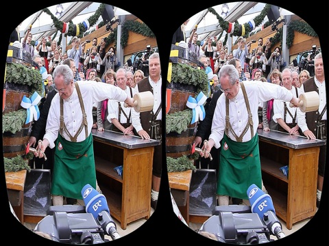 Start the app and slip your iPhone into one of the many available Goggle VR glasses. With the help of the split screen each eye is assigned its own view. The gyro-sensor in the iPhone, and that is special, moves the picture in front of your eyes according to how you move an bow your head.