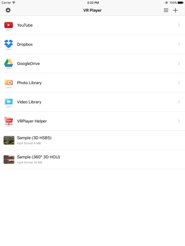 ● VRPlayer can play not only general 2D movies but also 3D movies (half side by side or over and under) for VR (google cardboard)