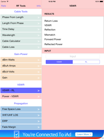 The VSWR Convert utility allows you to convert between VSWR and Return Loss. You can also calculate parameters based on input and output power. Now Includes many RF Tool calculators including FSL, Cable Loss, dB conversions and many more.