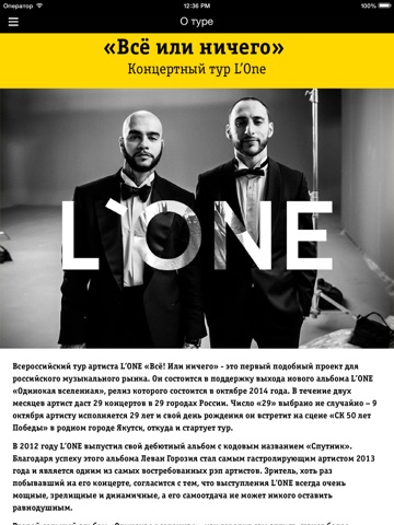Тур "ВСЁ! ИЛИ НИЧЕГО" приурочен к выходу нового альбома артиста "Одинокая вселенная". В рамках проекта LONE даст 29 концертов в 29 городах России. Генеральный партнер тура - оператор мобильной связи "Билайн".