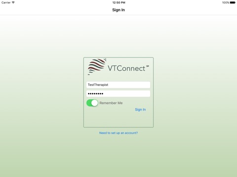 The VTConnect app is part of a proprietary, multi-platform tele-health solution for registered users at either http://portal.vtconnect.net or https://virtualtherapyconnect.com. To use the VTConnect app, practitioners and clients must first create an account and have an established connection. All organizations using this app have different processes to create an account. Contact the organization you are working with to set up an account.