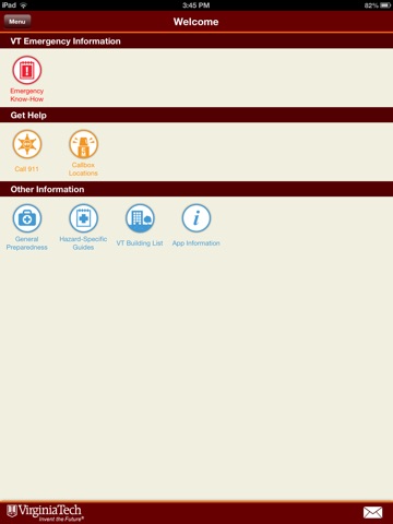 VTGemini provides emergency know-how guides, hazard-specific guides, and general preparedness information to educate the public before, during, and after an emergency. It provides the locations of the nearest emergency callboxes on the main campus. VTGemini lists all Virginia Tech buildings and facilities on campus and provides graphical and turn-by-turn walking and driving directions from the user’s current location to the selected building or facility. It also enables the user to send email messages to Virginia Tech Office of Emergency Management.