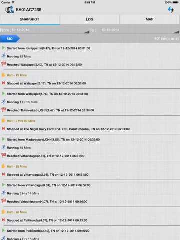 * Similarly, vehicles travel path between particular dates could be seen in Map.