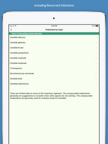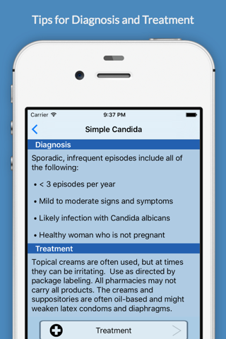 The Vulvovaginal Candidiasis (Candida, Yeast): Tips for Diagnosis and Treatment app is designed for health care professionals (and informed patients) to easily distinguish the many types of yeast infections and multiple treatment options available.