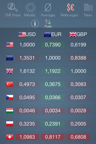 •Cross Rates Matrix für Währungen