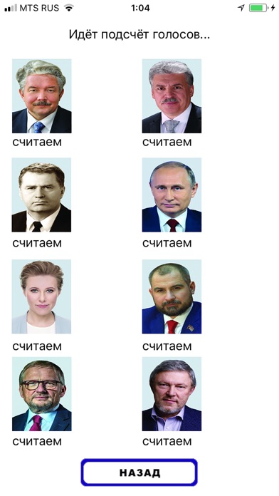 Приложение является развлекательным, не влияет на реальные выборы Президента РФ. Результаты в нашем голосовании могут отличатся от официальных и не обладают юридической силой.