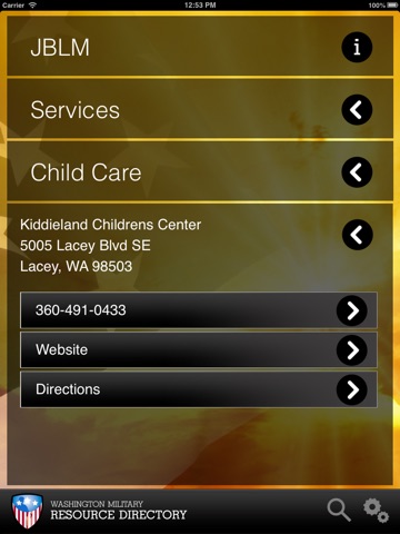 The Washington Military Resource Directory app provides one-stop access for service members, veterans and their families in Washington State by providing on-base phone numbers and listings for military-friendly businesses. Each business listing contains phone numbers, website information, and directions. The integrated mapping will provide turn-by-turn navigation.
