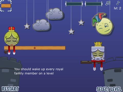 Wake up the Royal Family by combining wood parts. You should wake up every royal family member on a level.