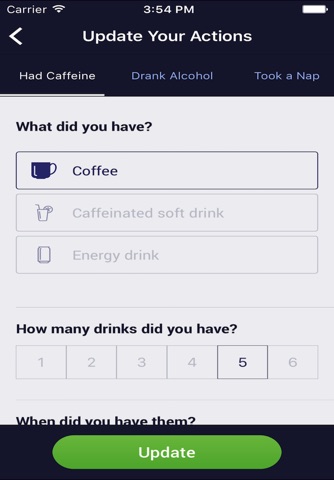 During the day, you can track habits such as drinking coffee or alcohol, or taking a nap, to see how they influence your energy level at any given moment.