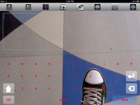 Walk Type Share is a messaging & social networking application for iPhone and iPad to text message while walking and share through SMS, Facebook, Twitter, email and group messaging, using transparent keyboard with live camera background.