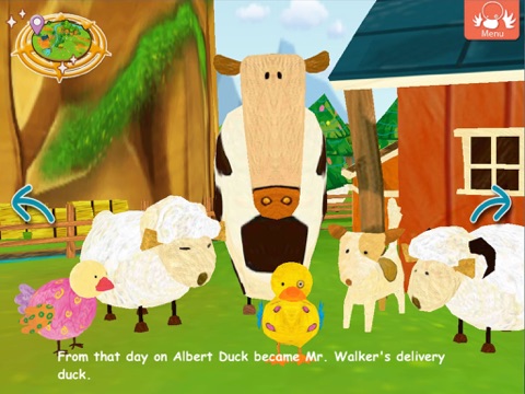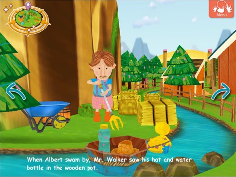 When he was walking despairingly, Mrs. Walker found Mr. Walker forgot his hat and water bottle! Albert can swim, so Mrs. Walker asked Albert if he could send them to Mr. Walker. Albert quickly arrive the other side of the river, and gave Mr. Walker his hat and water bottle. In the end, Albert became a “delivery duck” of the farm, and he was very proud of himself.