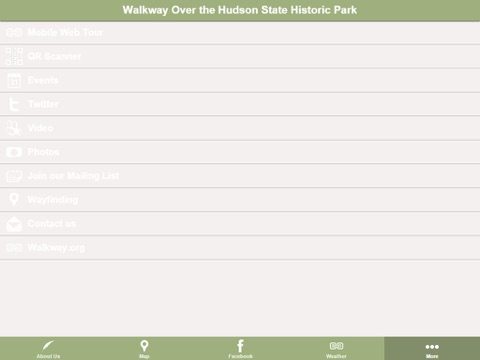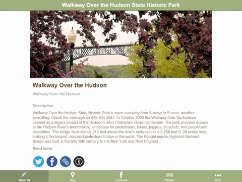 Helpful app that brings together information, pictures and much more about the Walkway Over The Hudson State Historic Park. The Walkway website, Facebook page, Instagram, Twitter are easily accessed through one simple interface. Find your way to the Walkway from your current location or get directions to multiple parks and historic sites in the Poughkeepsie and Highland/New Paltz areas.