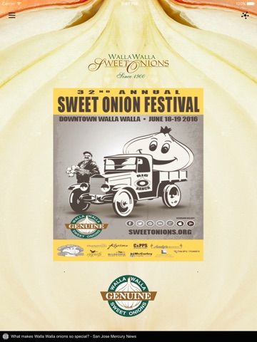 Welcome to Walla Walla Sweet Onions; home of the onion so sweet you can eat it like an apple. Walla Walla Sweet Onions is the State Vegetable and discover tasty recipes made only from the Genuine Sweet sanctioned only to grow in Walla Walla, Washington. Visit the Annual Onion Festival with activities covering onion food demonstrations, eating contents, music, and games and activities for the whole family. Check out the line up of the festival or discover the many factoids of only Walla Walla Sweets.
