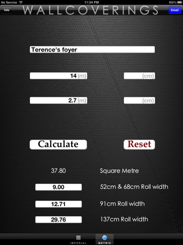 “Wallcoverings” is an universal iPhone and iPad app that gives an approximation for the amount of wall paper material needed for a project and is not liable for over or under measurements and in certain situations, a room with a lot of cabinetry or detail may require a professional in the business to go out in the field and perform an accurate measurement.