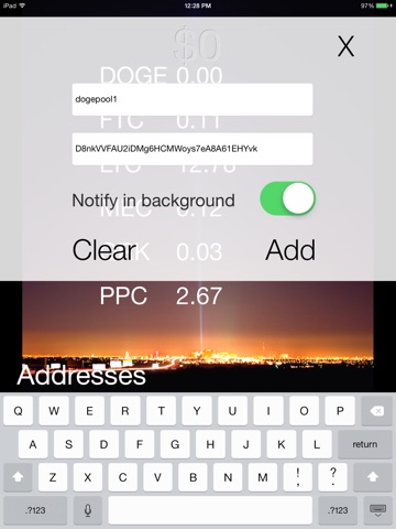 Tap an individual address field to edit / remove. Background notifications are automatically deleted upon removing an address.