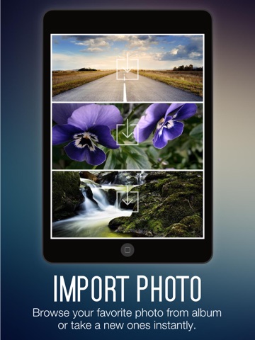 - Import photo from camera roll or photo album.