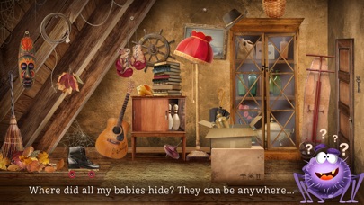 Like every game about Wally, Wally Family Adventure is not about the rules or performance of the player. It is about the process, the imagination. The app has an entertaining vibe with fun music, friendly characters and object play - while looking for the hiding baby spiders kids can create own bowling row and throw the ball, or pile up the objects and see a pyramid falling down, fling and catch an object, play darts or or just follow their imagination.
