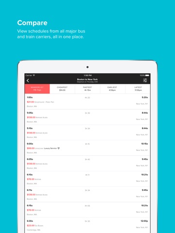 • Compare deals – Sort, filter and compare bus and train trips from hundreds of carriers in one place.