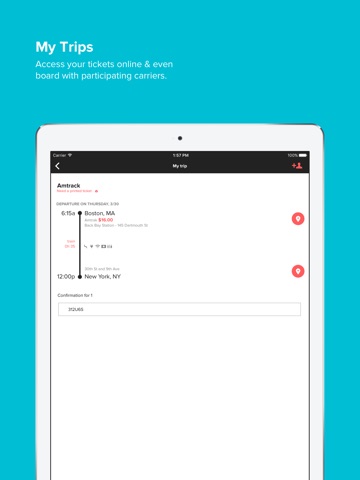 • Mobile boarding – Access your tickets and board the bus or train using the app with participating carriers.
