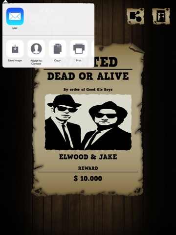 Easy to use app. Upload an image or take a photo and share the western reward posters with your family and friends on social networks.