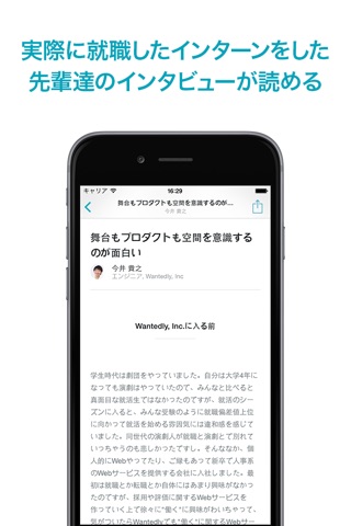 「App Store Best of 2014」に選ばれたアプリ ”Wantedly”の学生版です。