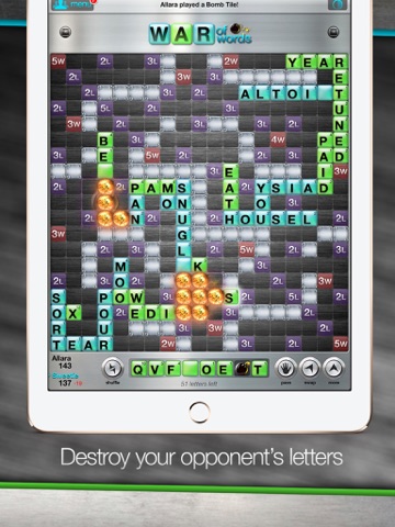 War of Words is the action-packed crossword game with bombs! It starts with the turn-based word spelling gameplay you know and love—and adds Action Tiles! Have you ever wanted to blow up your opponent’s words? Or maybe steal some words for yourself? Now you can.
