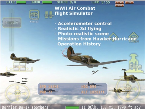 Warbirds Hurricane is a 3d WWII air combat game, a flight sim with accelerometer control, photo-realistic scene, and battle missions based on true history.