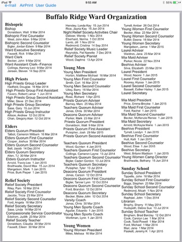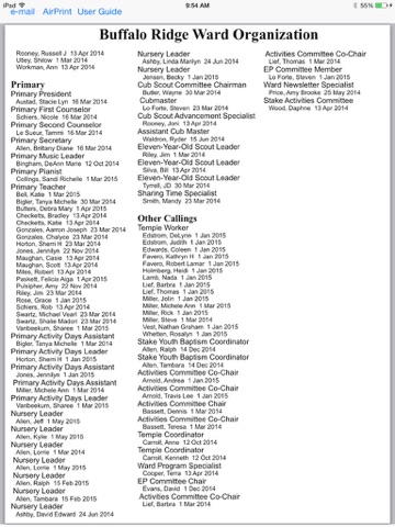 Producing a 2 to 3 page PDF file of the entire Ward Organization.