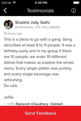 * View menus, pictures, phone numbers, directions, user testimonials, and all the other information about the restaurant and its multiple outlets.